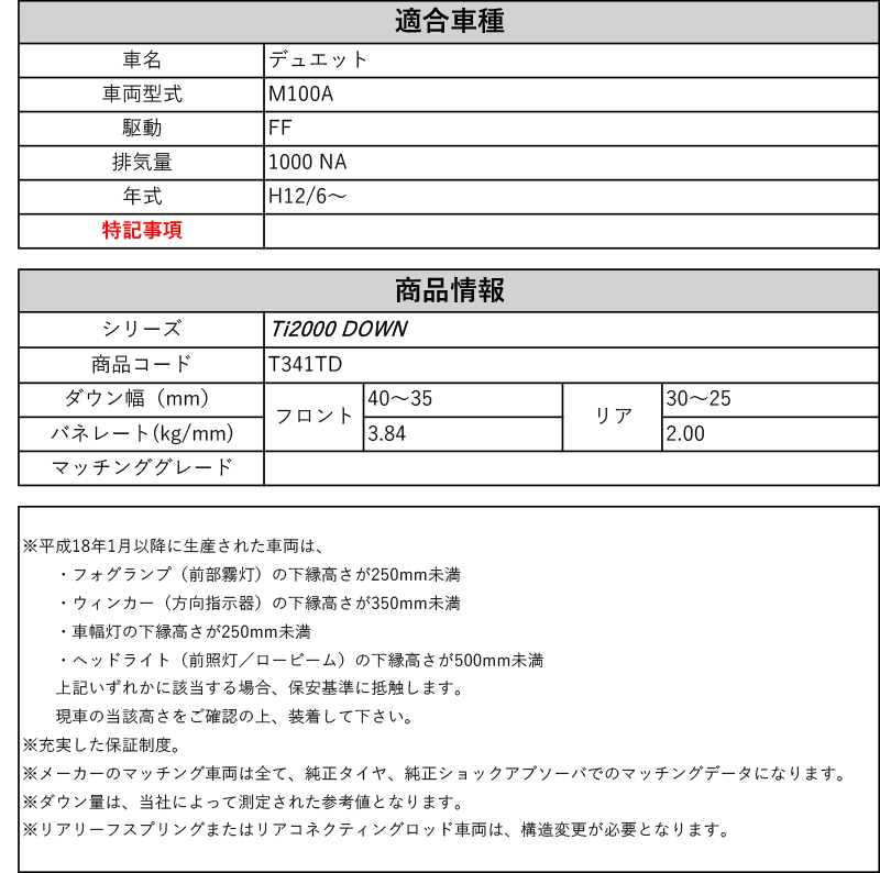 [RS-R_Ti2000 DOWN]M100A デュエット(2WD_1000 NA_H12/6〜)用車検対応ダウンサス[T341TD]